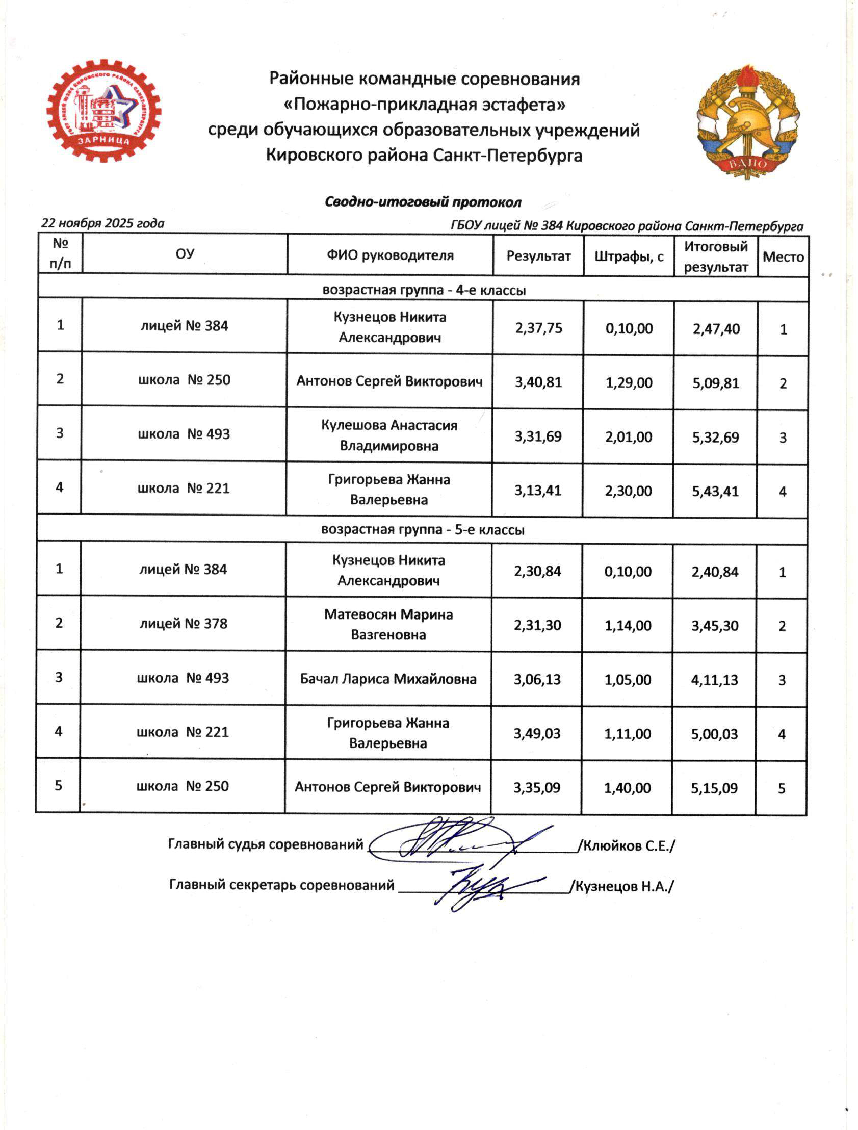 Время старта - по согласованному графику.
