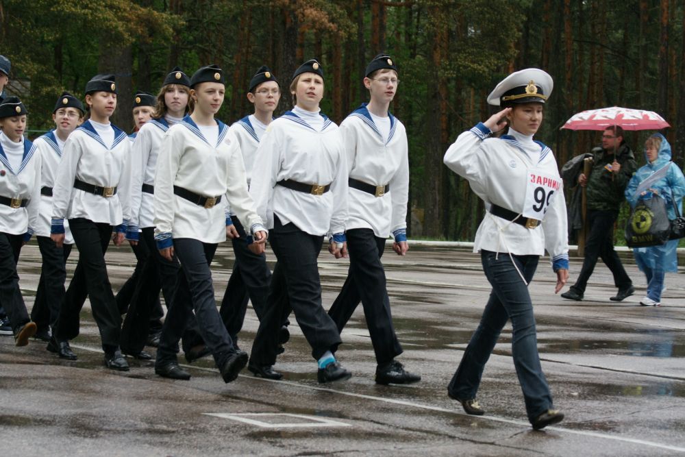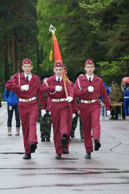 40-ой открытый финал оборонно-спортивных и туристских игр "3арница" Северо-Запада России и 15-е соревнования "Школа Безопасности. Часть 2. Строевая подготовка, Смотр знаменных групп, Приветствие команд, Полоса выживания.