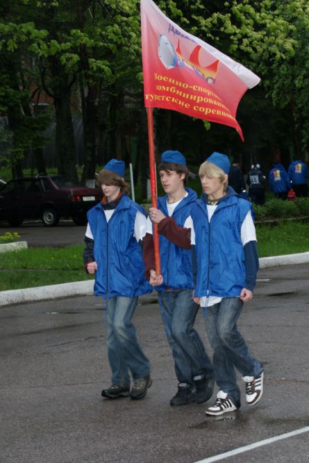 40-ой открытый финал оборонно-спортивных и туристских игр "3арница" Северо-Запада России и 15-е соревнования "Школа Безопасности. Часть 2. Строевая подготовка, Смотр знаменных групп, Приветствие команд, Полоса выживания.